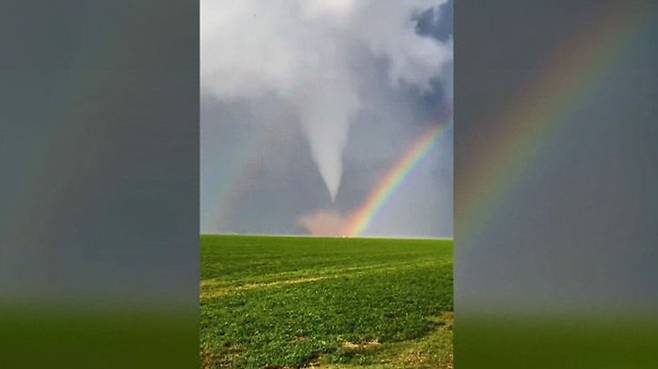 미국 텍사스 하늘에 무시무시한 토네이도와 형형색색의 아름다운 무지개가 동시에 나타나서 눈길을 끌었습니다.