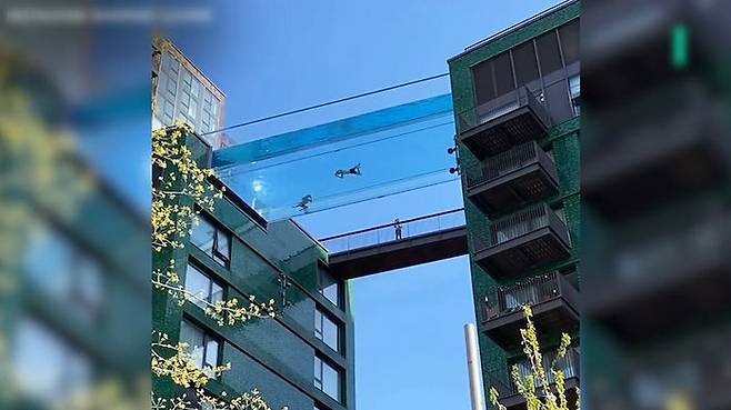 첫 소식은 영국에서 전해진 이야기인데요, 런던에 아파트 두 개 동 옥상을 잇는 공중에 떠 있는 수영장이 등장해서 화제입니다.