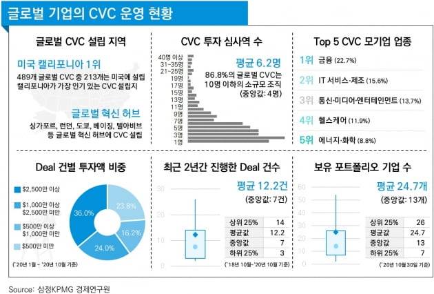 삼정KPMG는 29일 글로벌 CVC 489곳의 운영 현황을 담은 '글로벌 CVC 분석 리포트'를 통해 이 같이 발표했다.보고서는 BMW아이벤처스(iVentures), 유니레버 벤처스 등 글로벌 CVC의 설립 국가부터 조직 구성, 투자 분야, 투자 포트폴리오 등을 분석했다.