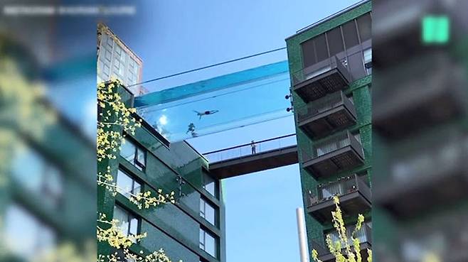 '스카이 풀'이라는 이름의 이 투명 수영장은 10층짜리 주상복합 아파트 두 개 동의 옥상을 잇는 형태로 만들어졌습니다.