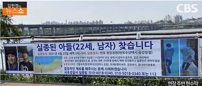 지난 토요일 밤, 친구를 만나러 나갔던 20대 대학생이 서울 반포 한강공원에서 잠든 뒤에 실종됐습니다. 경찰이 수색에 나섰고 가족들도 애타게 찾고 있지만 닷새가 지나도록 행방이 묘연한 상태인데요. 도대체 어떻게 된 일이고 지금 상황은 어떤지 저희 심층취재팀의 김승모 기자가 어제 그 현장을 직접 다녀왔습니다. 김승모 기자, 어서 오세요.