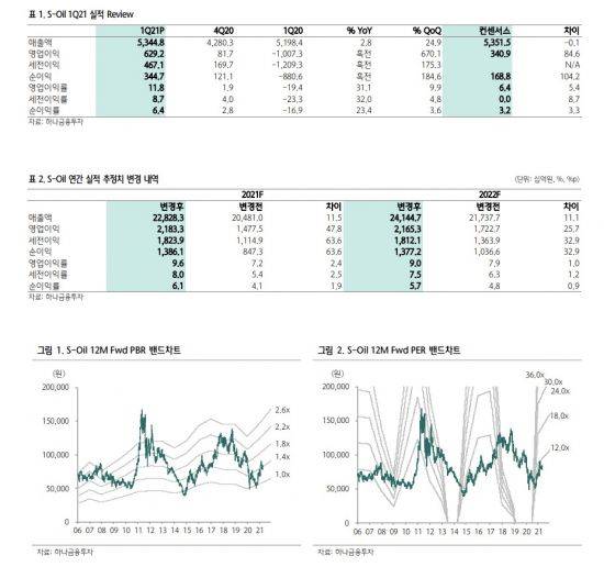이어 "정제마진의 구조적 약세가 지속되고 있고, 타사 정유 설비 가동률 상승으로 정제마진 부진이 이어질 것으로 전망돼 투자의견은 홀드"라면서 "다만 영업이익 추정치 상향을 반영해 목표주가는 7만2000원에서 8만2000원으로 조정했다"고 덧붙였다.