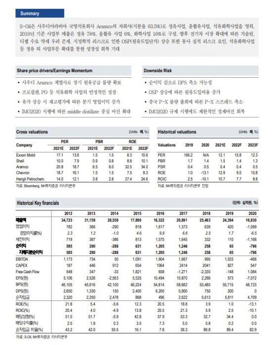 에쓰오일에 대한 보수적인 시각은 '정유 사업'에서 비롯된 것이기 때문에 이 같은 에쓰오일의 변화는 향후 주가 성장성을 밝게 하는 요인이다. 주력 사업인 정유 사업 의존도를 줄이고 석유화학 사업을 강화하는 것은 새로운 성장 전략인 '비전 2030'의 일환이다. 에쓰오일은 2018년 5조원을 들여 정유 석유화학 복합 시설(RUC&ODC)을 완공한 데 이어 울산 2단계 석유화학 프로젝트인 '샤힌 프로젝트'를 추진하고 있다.