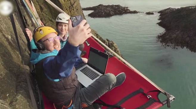 영국의 한 회사원이 해안 절벽 위에 사무실을 차리고 원격근무를 하는 모습이 화제입니다.