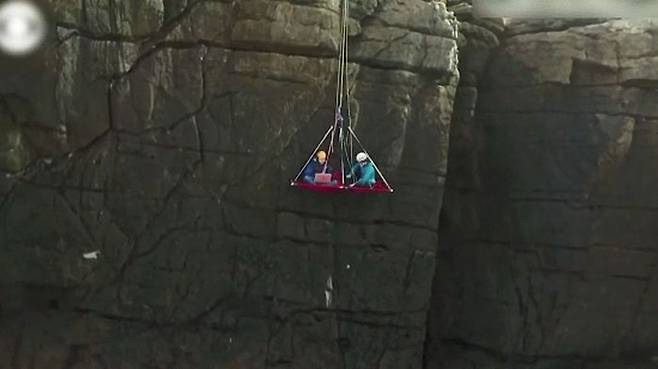 영국 웨일스 앵글시섬의 높은 절벽에 설치된 매트 위에 아슬아슬하게 앉은 주인공, 소프트웨어 회사에서 전화 상담원으로 일하고 있는 34살 제이슨 그리핀 씨입니다.