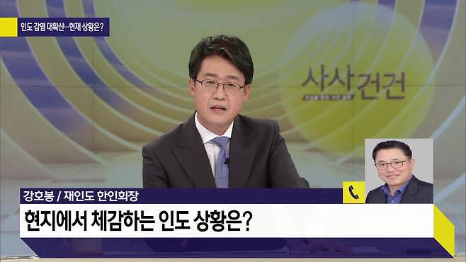 ◎박찬형 보신 것처럼 인도의 코로나19 상황이 심각합니다. 한국 교민들도 불안한 상태일 텐데요. 현재 상황은 어떤지 강호봉 재인도 한인회장 전화로 연결해 보도록 하겠습니다. 회장님, 안녕하십니까?
