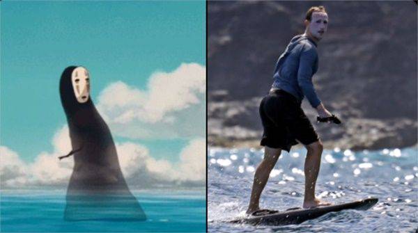 이를 본 누리꾼들은 "파충류처럼 탈피 중인 게 아닐까?", "사실 저커버그가 가오나시인 것 아닐까?" 등 다양한 추측을 이어갔고, SNS 등 온라인에는 "저커버그가 대체 왜 그랬을까?"를 주제로 한 밈들이 연이어 등장했습니다.