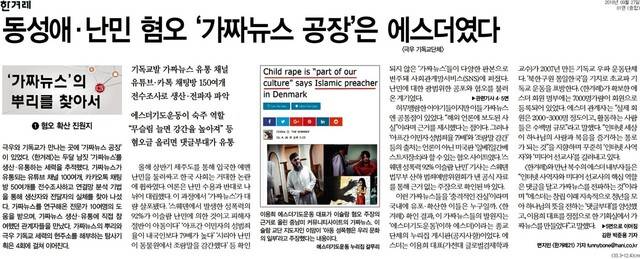 <한겨레>는 2018년 9월27일 ‘가짜뉴스의 뿌리를 찾아서’ 기획 보도 시리즈의 하나로 ‘동성애·난민 혐오 가짜뉴스 공장의 이름, 에스더였다’는 제목의 기사를 보도했다. 해당 기사는 기독교발 가짜뉴스 22건이 에스더와 연관돼 있다고 밝히며, 유튜브에서 가짜뉴스와 관련된 특정 단어로 주요 영상 정보를 수집한 뒤 구독자 수가 1천명 이상이거나 총 조회 수가 10만 이상인 채널을 추리고 이 가운데 2개 이상의 채널에 등장하는 25명을 주요 운영·배포자로 특정했다. 또 이들 가운데 21명이 에스더와 직간접적으로 관련이 있다고 보도했다.