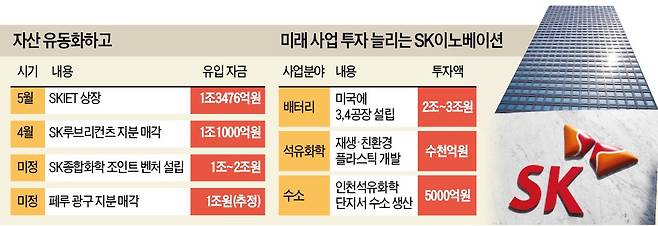 SK이노베이션은 지난달 두 건의 대규모 자산 유동화에 성공했다. 자회사 SK아이이테크놀로지(SKIET)와 SK루브리컨츠 지분을 팔았다. 경영권 유지에 필요한 약 60%만 남기고 현금화했다. SKIET 지분 매각으로 1조3476억원, SK루브리컨츠 매각으로 1조1000억원의 현금이 유입된다.