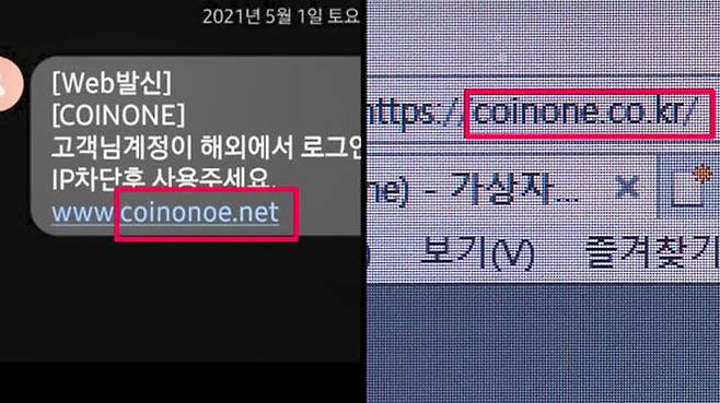 문자나 이메일로 실제 거래소 화면과 똑같이 만든 가짜 사이트 주소를 보내서 개인정보를 빼내는 건데요.