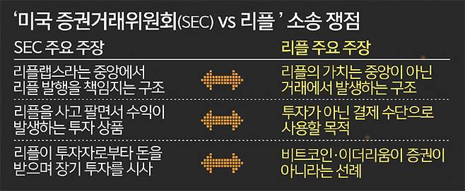 SEC는 리플랩스라는 중앙에서 리플 발행을 하며 이에 투자 가치를 담았다고 해석했다. 아울러 리플랩스가 리플을 판매해 최소 13억8000만달러(약 1조5414억원)의 자금을 조달하는 등 사실상 증권사 역할을 했다고 봤다.