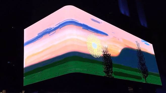 지난 1일 저녁 8시 21분, 서울 삼성동 케이팝스퀘어 대형 스크린에 등장한 데이비드 호크니의 작품입니다. 광활한 초원에 동이 트고, 점점 커진 태양이 폭죽처럼 터지면서 스크린을 가득 메웁니다.