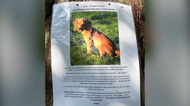 최근 영국 체셔주에 붙은 한 전단지입니다. 마스크를 제발 제대로 버려달라고 호소하는 내용인데요, 이 전단을 붙인 사람은 사람들이 함부로 버린 마스크 때문에 반려견을 잃었다고 합니다.