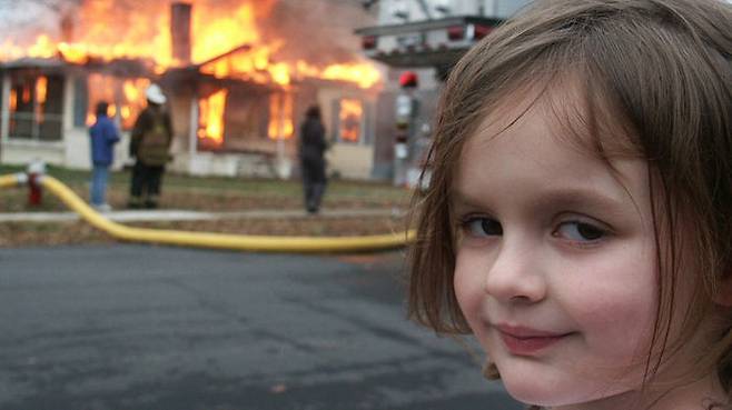 상황과 어울리지 않는 미소가 인터넷에서 화제를 모았고, '재앙의 소녀'라는 제목까지 붙여졌는데요, 지난달 29일 이 사진의 원본이 우리 돈 5억 8천여만 원에 낙찰이 됐습니다.