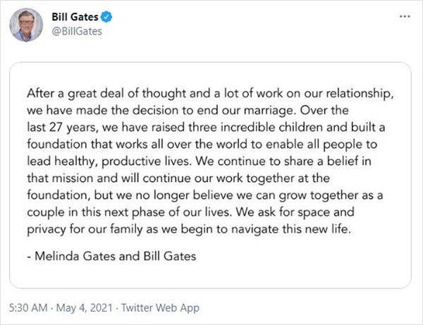 세계적인 억만장자이자 마이크로소프트(MS)의 공동 창업자인 빌 게이츠와 아내 멀린다 게이츠가 이혼 소식을 전했습니다.