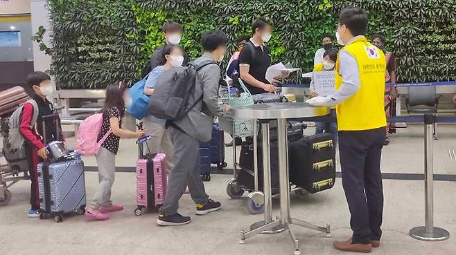 교민들은 인도 첸나이에서 현지 비스타라항공 특별 운항편을 타고 오늘 오전 10시17분 인천국제공항에 도착했습니다.