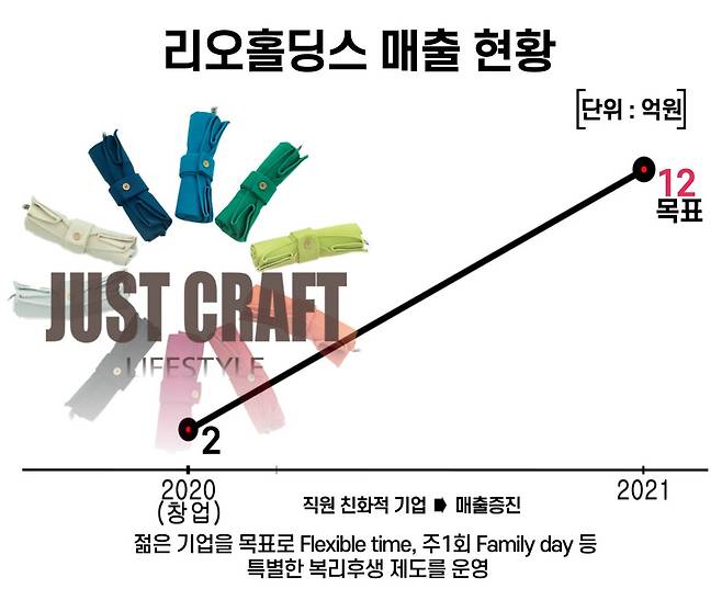 리오홀딩스의 창업의 해 매출은 2억원 가량. 2021년에는 12억원의 매출을 겨냥하고 있다. 소셜네트워크서비스(SNS), 유튜브, 인플루언서 마케팅을 통해 브랜드를 확장하는 것도 진행 중이다. “2022년 이후에는 보다 중장기적인 목표로 국내 배출 폐기물을 사용해 독자적인 친환경 소재의 개발, 소재 연구개발(R&D) 투자를 기획하고 있습니다. Just Craft Mall에서 함께 친환경 생태계를 만들어가는 다양한 브랜드와 협업 생산을 통해 업사이클링, 리사이클링 상품 매출 확대를 계획 중입니다. 입점사(친환경, 장인) 브랜드 상품들을 직접 체험하고 공감할 수 있는 오프라인 친환경 콘셉트 스토어 오픈도 염두에 두고 있어요.”