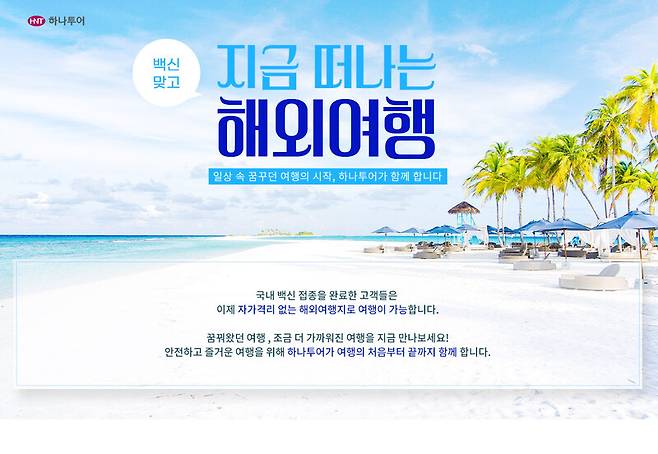 국내 최대 여행사 하나투어가 6일 코로나19 백신 접종 완료자 대상 해외여행 패키지 상품을 내놨다.
