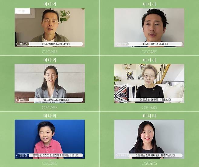 '미나리'가 국내서 100만 관객을 달성한 가운데, 정이삭 감독과 배우 스티븐 연, 한예리, 윤여정, 앨런 김, 노엘 케이트 조가 한국에 가슴 뭉클한 감사 인사를 전했다.