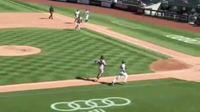 오늘(7일) 빅리그 최고의 화제는 1루 주자의 환상 질주였습니다.