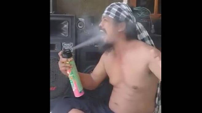 그는 몇 년 전 자신의 입 속에 살충제를 수십 초씩 분사하는 영상을 SNS에 올려 왔습니다.