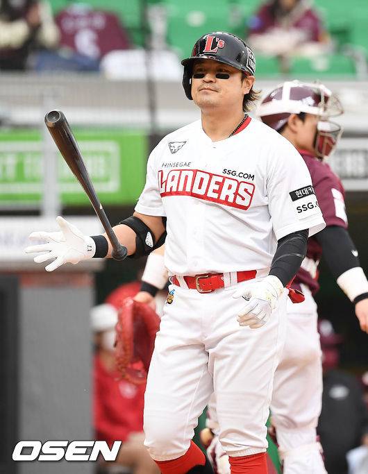 5회말 1사 SSG 추신수가 타석에서 헛스윙 삼진 아웃을 당한 후 아쉬워하고 있다./ rumi@osen.co.kr