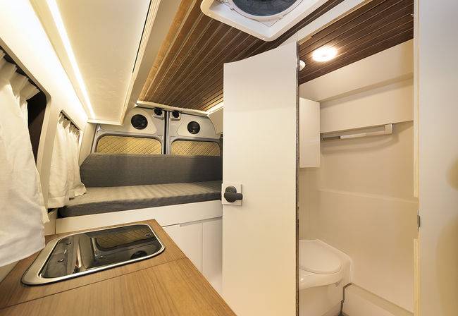 르노 마스터 15인승 버스 기반 캠핑카는 기존의 마스터 밴 기반 캠핑카 대비 더욱 여유로운 공간 구성이 가능하다. 보통 접이식으로 구성되는 캠핑카 내 침대, 테이블, 수납장 등도 고정형으로 설치가 가능하다.