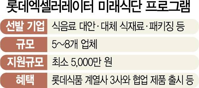 롯데푸드테크펀드는 롯데액셀러레이터가 운영하는 미래식단프로젝트의 자금으로도 사용된다. 롯데액셀러레이터는 지난 4월 미래식단프로젝트 출범을 밝히며 △Future Food(현재 식음료 대안) △Medi Food(식의약, 기능성 식품) △대체 식재료(식재료 수급과 환경 문제 해결 대안)△패키징(환경친화적이며 지속가능한 포장재) 등 푸드·푸드테크 분야 스타트업을 선정해 한 업체당 5,000만원 씩 지원한다고 밝혔다.