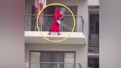 아파트 주민들이 여성이 베란다 밖으로 몸을 내민 채 위험한 행동을 하는 것을 발견하고 관리 사무실에 신고했지만 관계자의 만류에도 여성은 기이한 행동을 멈추지 않았다.
