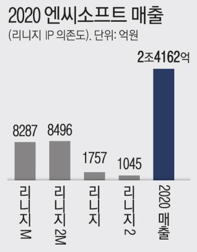 ‘트릭스터M’이 기대대로 엔씨의 ‘리니지 의존도’를 낮출지가 업계 초미의 관심사다. 수년 동안 엔씨의 핵심 매출원은 ‘리니지’ IP였다. 지난해 기준 ‘리니지’ 형제들의 연간 매출은 1조9585억원이다. 모바일 게임 ‘리니지M’ 8287억원, ‘리니지2M’ 8496억원, PC 게임 ‘리니지’ 1757억원, ‘리니지2’ 1045억원 등이다. 이는 엔씨 전체 매출(2조4162억원)의 80%가 넘는 규모다.