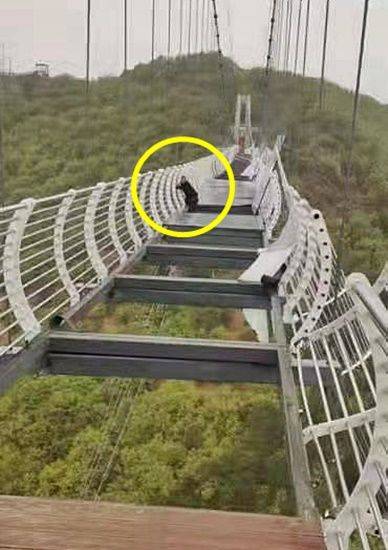 중국 용정 비암산에서 100m 높이에 설치된 유리 다리가 강풍에 파손돼 관광객 1명이 고립되는 사고가 발생했습니다.