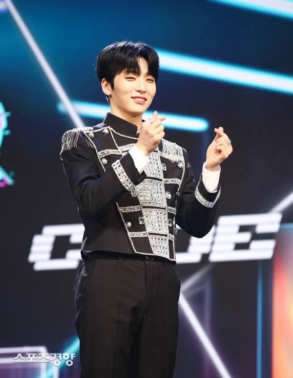 원어스 멤버 서호가 11일 광진구 예스24라이브홀에서 진행된 다섯 번쨰 미니앨범 '바이너리 코드 (BINARY CODE)' 쇼케이스에서 포즈를 취하고 있다.