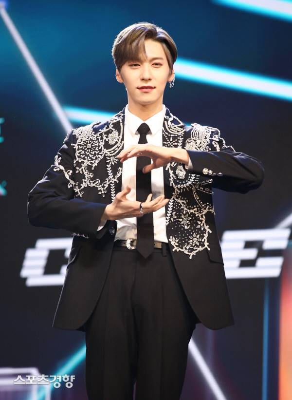 원어스 멤버 건희가 11일 광진구 예스24라이브홀에서 진행된 다섯 번쨰 미니앨범 '바이너리 코드 (BINARY CODE)' 쇼케이스에서 포즈를 취하고 있다.
