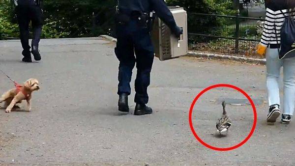 뉴욕 도심 한복판에서 경찰관 뒤를 졸졸 쫓아다니는 오리가 나타나 시민들의 눈길을 끌었습니다.