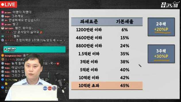 5월 13일 집코노미 타임즈 라이브 시작하겠습니다. 6월 1일부터 양도세율과 종부세율이 올라가죠. 여당에선 부동산특위를 구성해서 양도세와 종부세를 완화해야 하는 것 아니냐, 라는 논의를 하고 있습니다. 그래서 어떤 이야기들이 나왔는지 짚어보고 원안대로 6월에 세율이 인상될 경우 어떻게 되는지도 설명해볼게요.