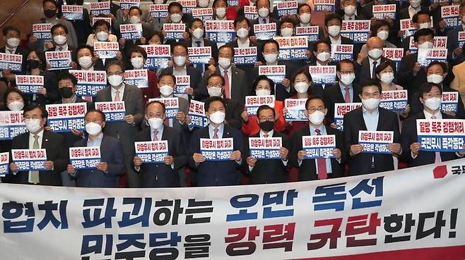 어제 민주당이 김부겸 국무총리 후보자 임명동의안 본회의 표결을 강행한 것에 항의하는 차원입니다.