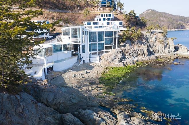 바다 뷰로 유명한 독채 펜션 '여수 예술랜드' 안에 위치한 카페 라피끄.