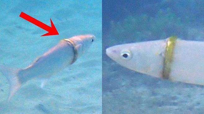 현지 시간으로 11일 미국 피플지 등 외신들은 호주 노퍽섬 해안에서 금반지가 몸통에 낀 숭어가 발견됐다고 보도했습니다.