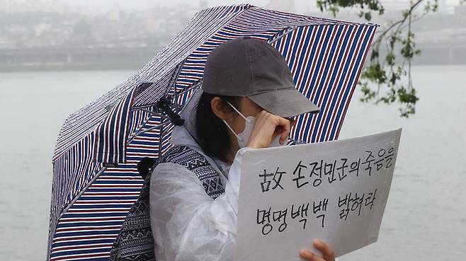 "정민이의 죽음, 명명백백 밝혀라"..빗속 추모 집회