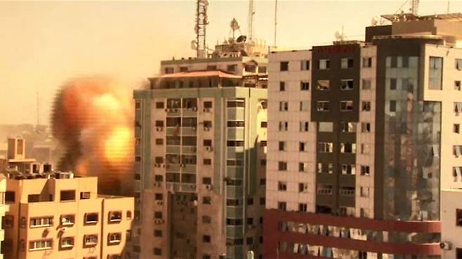 이스라엘군은 전날 AP통신과 알자지라 방송 등 언론사가 입주한 가자지구의 건물을 폭격으로 무너뜨렸습니다.