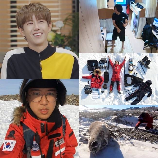 먼저 박지강은 남극 한가운데 위치한 숙소에서 구성진 기상 송과 함께 눈을 뜬다. 그는 영하의 기온을 밑도는 바깥 날씨에도 불구하고 반팔, 반바지 차림으로 남극 2회차 다운 ‘짬바’를 자랑하기도. 낯선 광경에 MC 광희는 “한국에서 찍으신 거 아니죠?”라고 의심의 눈길을 보내 스튜디오에 폭소를 터뜨렸다는 후문이다.