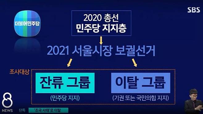 조사 대상은 지난해 총선에서 민주당을 지지했던 유권자들 가운데 이번 재보선에서 지지를 거둔 유권자들과, 여전히 민주당을 지지하는 유권자(잔류)들로 정했다. 지지를 거둔 이들은 기권표를 던진 그룹(탈동원;기권)과 아예 다른 당 후보를 찍은 그룹(전향)으로 또 다시 나눴다. 이들을 세대별, 성별로 분류해 4월 17일부터 23일까지 7차례 그룹 인터뷰를 진행했다. SBS는 지난 5일 발간된 보고서를 입수해 11일, 8시 뉴스에서 보도했다.