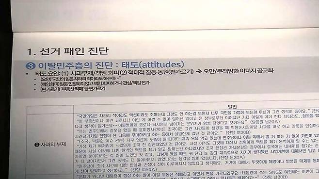 다시 한국으로 돌아와, 민주당 서울시당은 지난 5일 발간된 FGI 보고서를 당 소속 국회의원 전원에게 친전 형태로, 1부씩 보냈다. 서울시당 고위 관계자는 "(민주당 지지에서) 돌아선 사람들의 상태를 정확히 알아야 대안을 세울 수 있기 때문에 이번 조사를 계획했고 그 결과를 공유했다"고 말했다. 다 같이 돌려보고 논의의 기초 자료로 삼겠다는 얘기다. 그러나 지난 11일 SBS 보도가 나가기 전까지 상당수의 의원들은 보고서를 제대로 열어보지 않았거나 받은 사실조차 모르고 있었던 것으로 전해졌다.