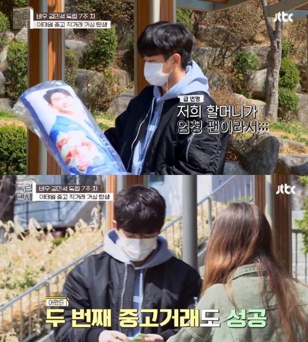 김민석은 동네 놀이터를 거래 장소로 잡았고, 속속 찾아온 고객님(?)들과 성공리에 중고 거래를 마쳤다. 그는 외국인과의 대화를 위해 번역기를 이용하는가 하면 "저 누군지 아세요?"라는 자체 인지도 테스트를 진행해 스튜디오에 모인 출연진들의 질타와 민망함을 동시에 받았지만, 김민석은 이에 아랑곳없이 내심 뿌듯함을 감추지 않았다.