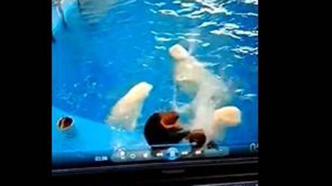해당 영상에선 아쿠아리움의 조련사로 보이는 남성이 훈련 중이던 벨루하들을 손으로 때리고 발길질하는 모습이 그대로 담겼습니다.