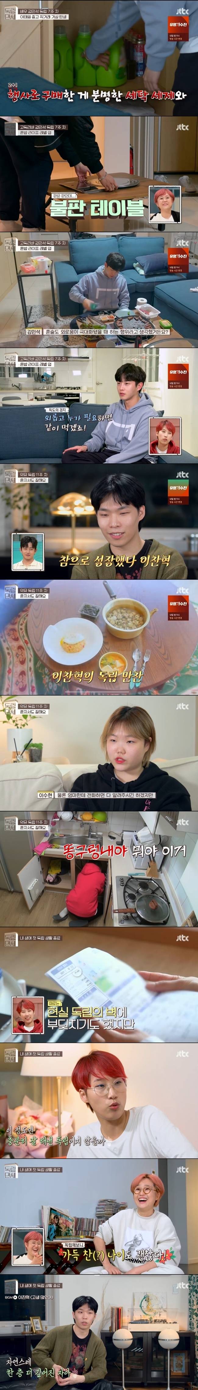 50대 송은이부터 20대 이찬혁, 이수현 30대 김민석, 재재까지 다양한 연령층이 누군가의 품에서 떠나 처음으로 독립해나가는 과정은 그야말로 고군분투였다. 난생처음 해보는 일에 어려움을 겪기도 하고, 그 과정에서 성취감과 뿌듯함을 느끼기도 했다.