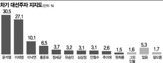 [아경 여론조사] 윤석열, 차기대선주자 1위 유지..'이재명과는 오차범위 내 접전'
