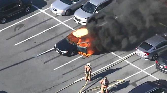 시뻘건 불길은 차량 전체를 단숨에 집어삼켰고 검은 연기가 끊임없이 뿜어져 나옵니다.