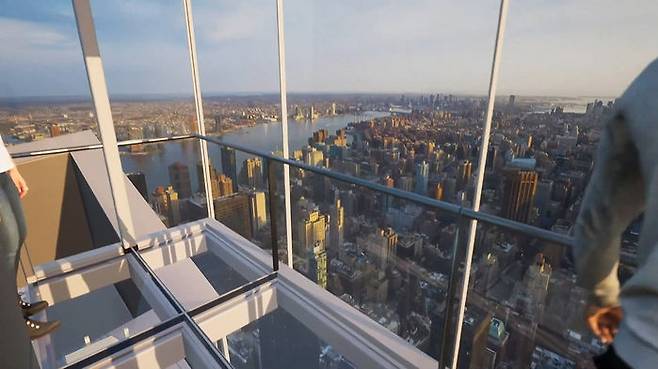 미국 뉴욕 맨해튼에 도심 전체가 훤히 내려다보이는 투명 엘리베이터가 설치돼 화제를 모으고 있습니다.