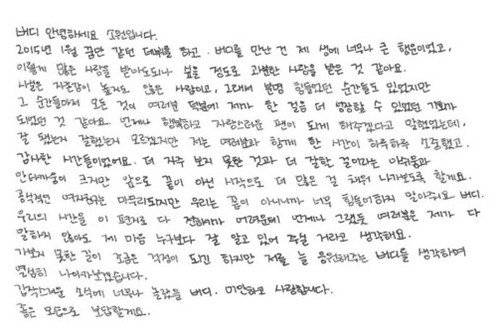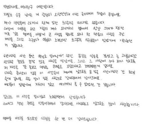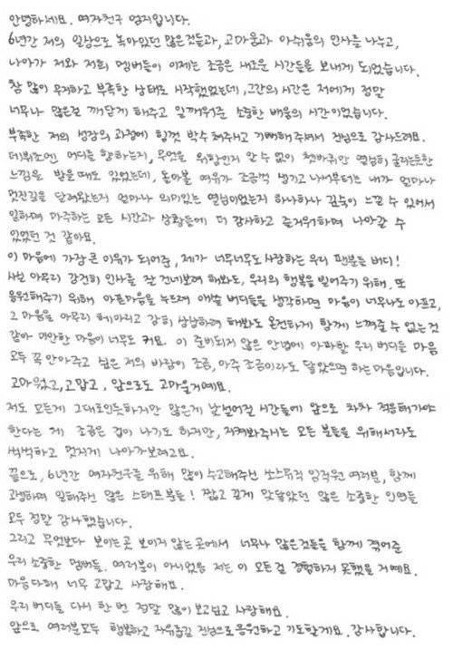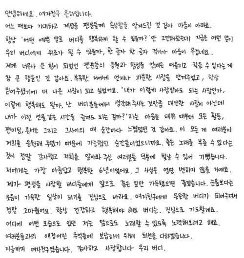 그룹 여자친구가 계약종료를 앞두고 손편지를 공개했다.